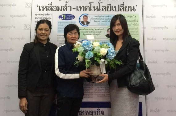 มอบดอกไม้แสดงความยินดีแก่หนังสือพิมพ์กรุงเทพธุรกิจ